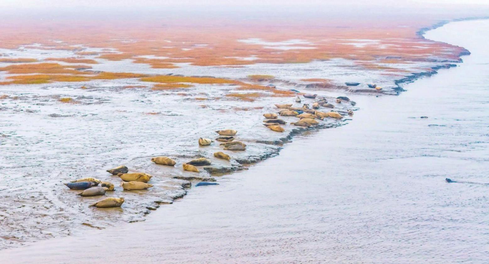 本报讯记者王罡报道11月10日,盘锦市摄影人的镜头,在辽宁辽河口国家级自然保护区三道沟海域,捕捉到了近70只西太平洋斑海豹(以下简称斑海豹)成群结伴、上岸休憩的生动景象。