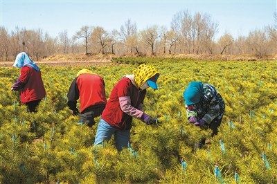 阜新市彰武县四合城林场职工进行樟子松嫁接红松