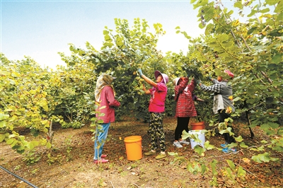 本溪市桓仁满族自治县老黑山村林农采摘榛子