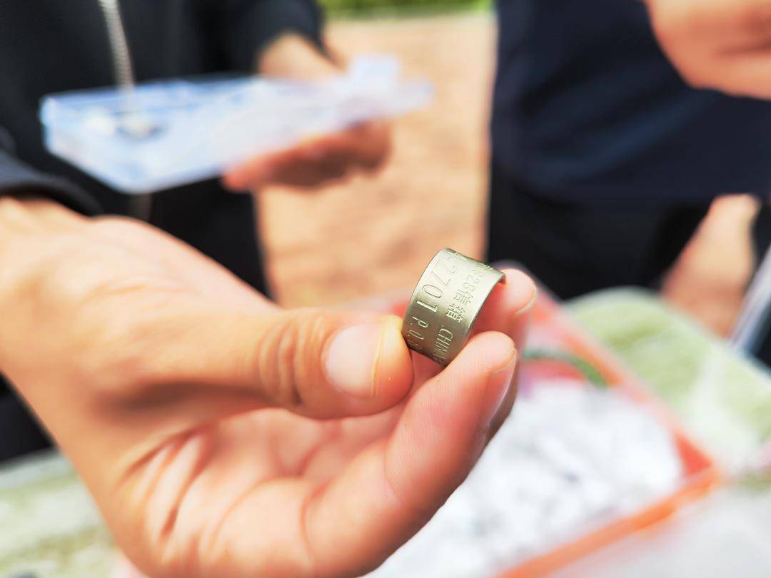 拿起一枚金属环在手心掂量,记者发现,其重量很轻,红角鸮脚上的圆环更像是一枚定制的脚镯,既不会脱落,又给它留足了活动空间,不影响正常飞行与生活。