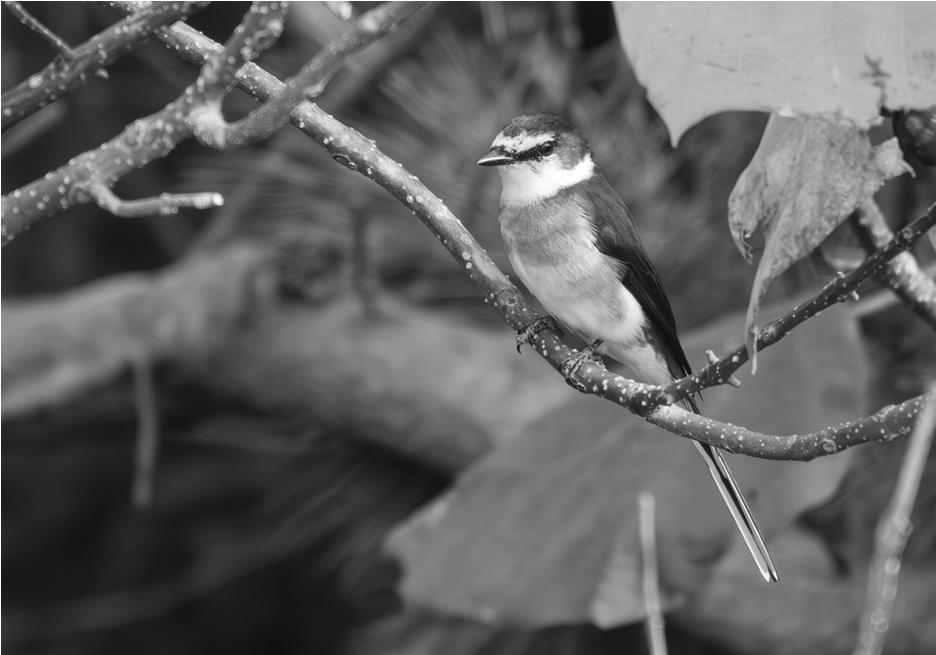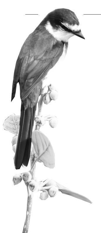 琉球山椒鸟是雀形目山椒鸟科山椒鸟属的鸟类,是近年才从灰山椒鸟里独立出来的岛屿种。它的嘴部为黑色,前额至眉纹白色,头顶和耳羽黑灰色;喉部白色,下颊有白色月牙斑;腹部浅灰色,脚和爪黑色。与灰山椒鸟不同之处在于,它的额部白色范围小,胸侧和腹部呈浅灰色。
