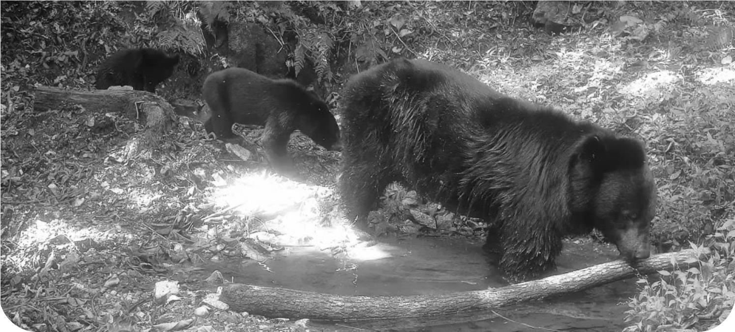 下图:红外相机拍摄到的黑熊一家。本报记者白琳摄